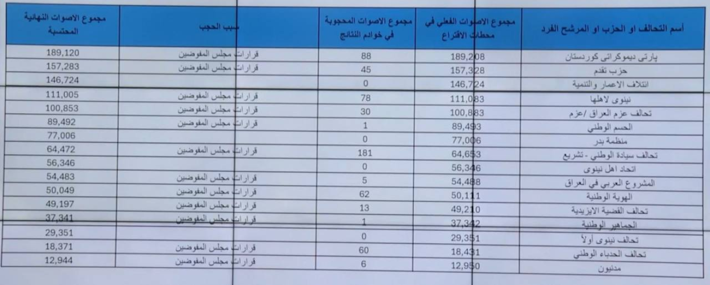 ووفق نتائج المفوضية، فقد بلغت الأرقام كالتالي: