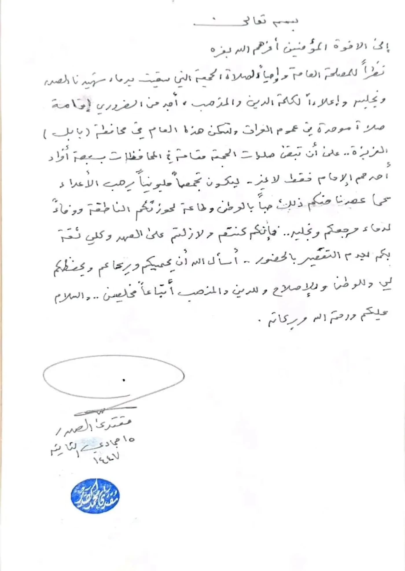 دعا زعيم التيار الصدري، مقتدى الصدر، إلى اقامة صلاة جمعة موحدة مليونية في محافظة بابل.