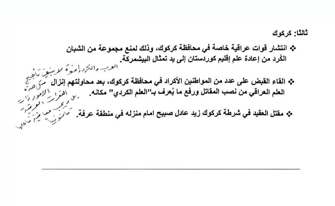 وفي وقت سابق اليوم، أعلنت قيادة شرطة محافظة كركوك، مقتل ضابط برتبة عقيد، في منطقة عرفة بكركوك.