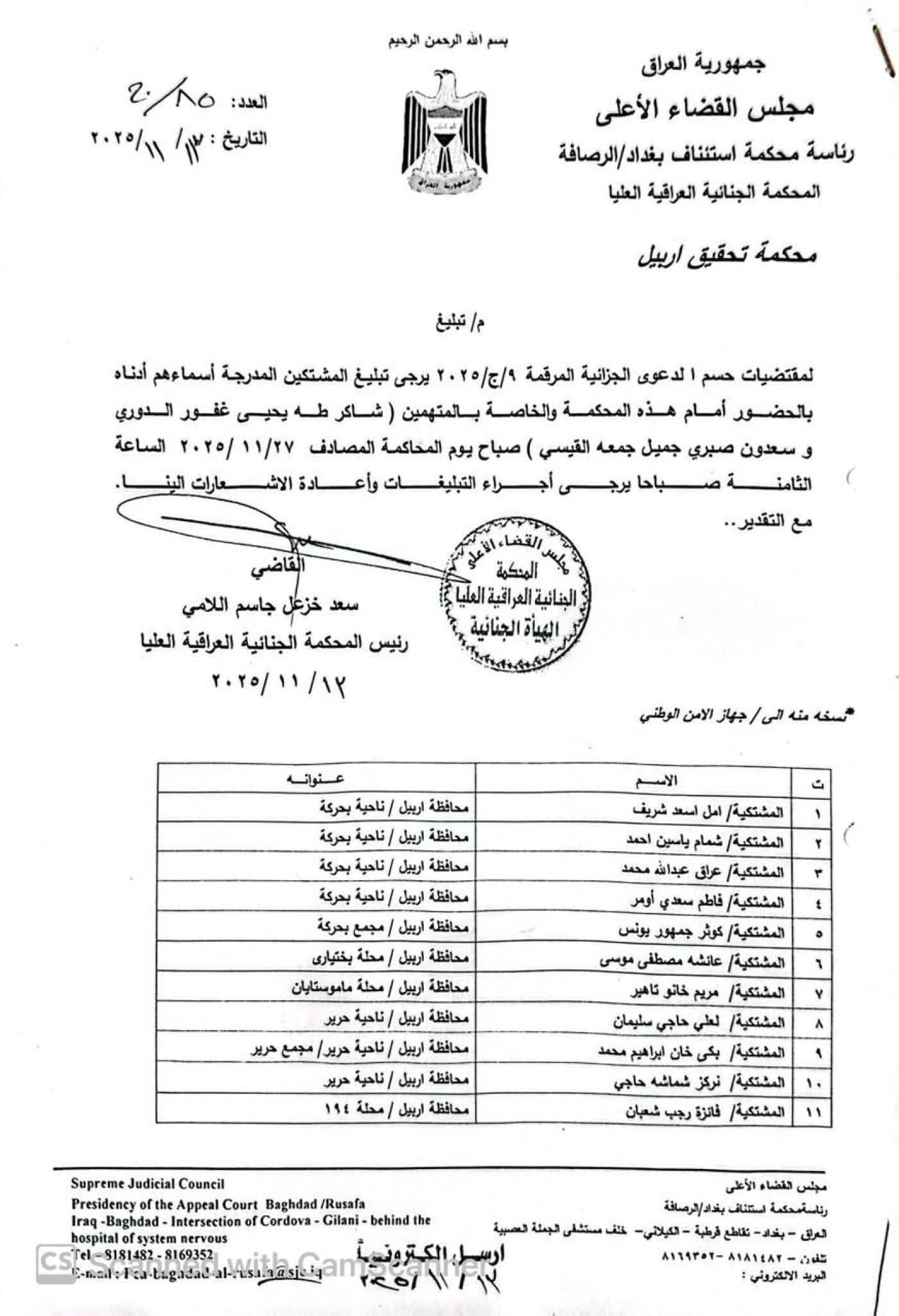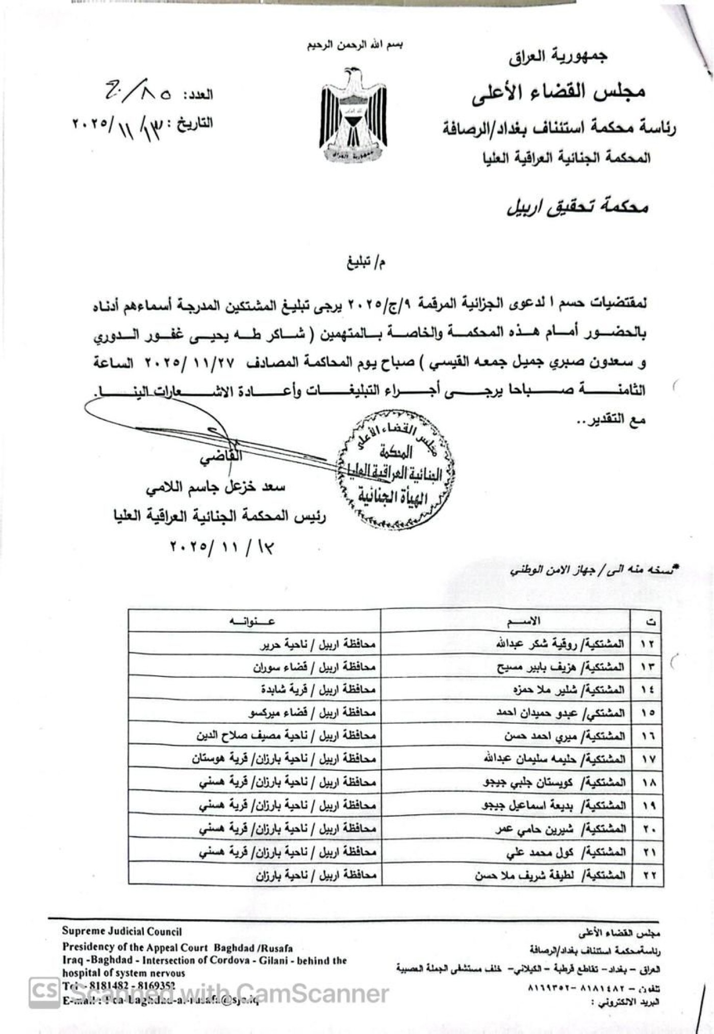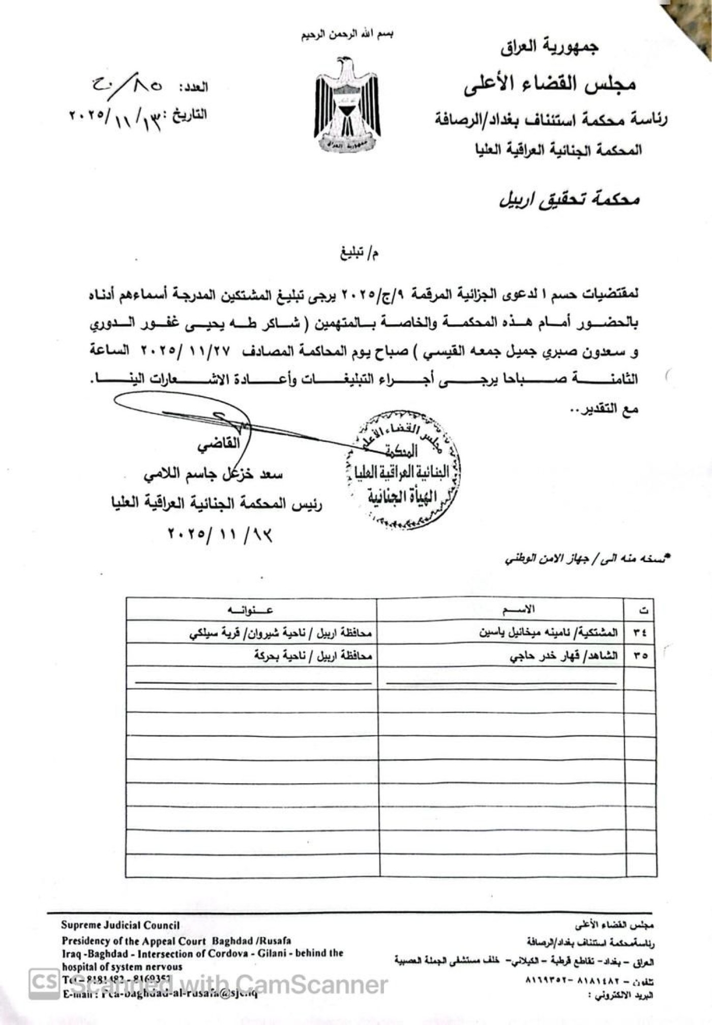 يذكر أنه قدّم فريق المحامين المدافعين عن قضية "إبادة البارزانيين" أسماء 61 متهماً بالجريمة، أمام المحكمة الجنائية العليا، حتى الآن، لكن تمت محاكمة اثنين منهم فقط.