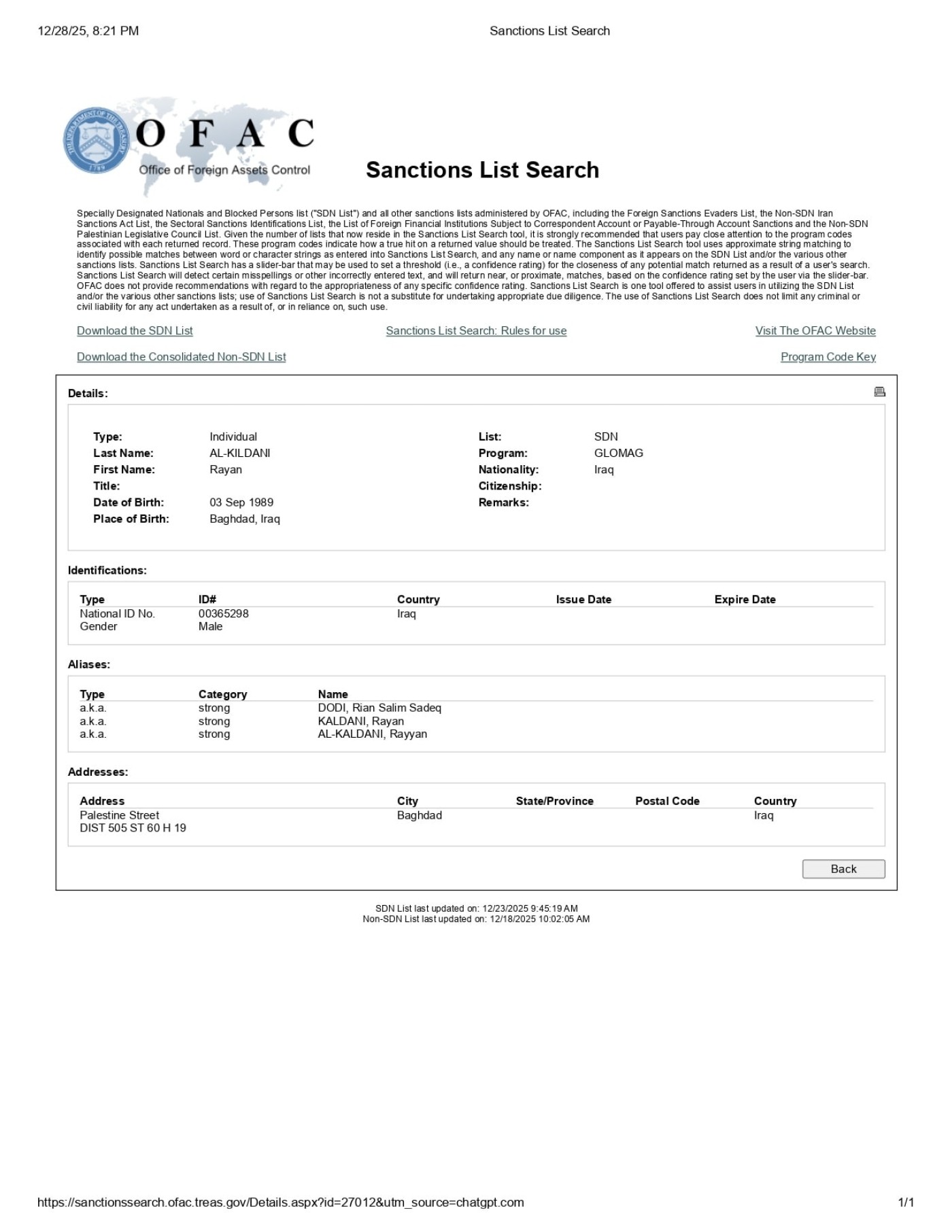 أعلنت وزارة الخزانة الأمريكية، عبر مكتب مراقبة الأصول الأجنبية (OFAC)، يوم 23 ديسمبر 2025، تجديد إدراج أمين عام "حركة بابليون" ريان الكلداني، على قائمة العقوبات الدائمة.