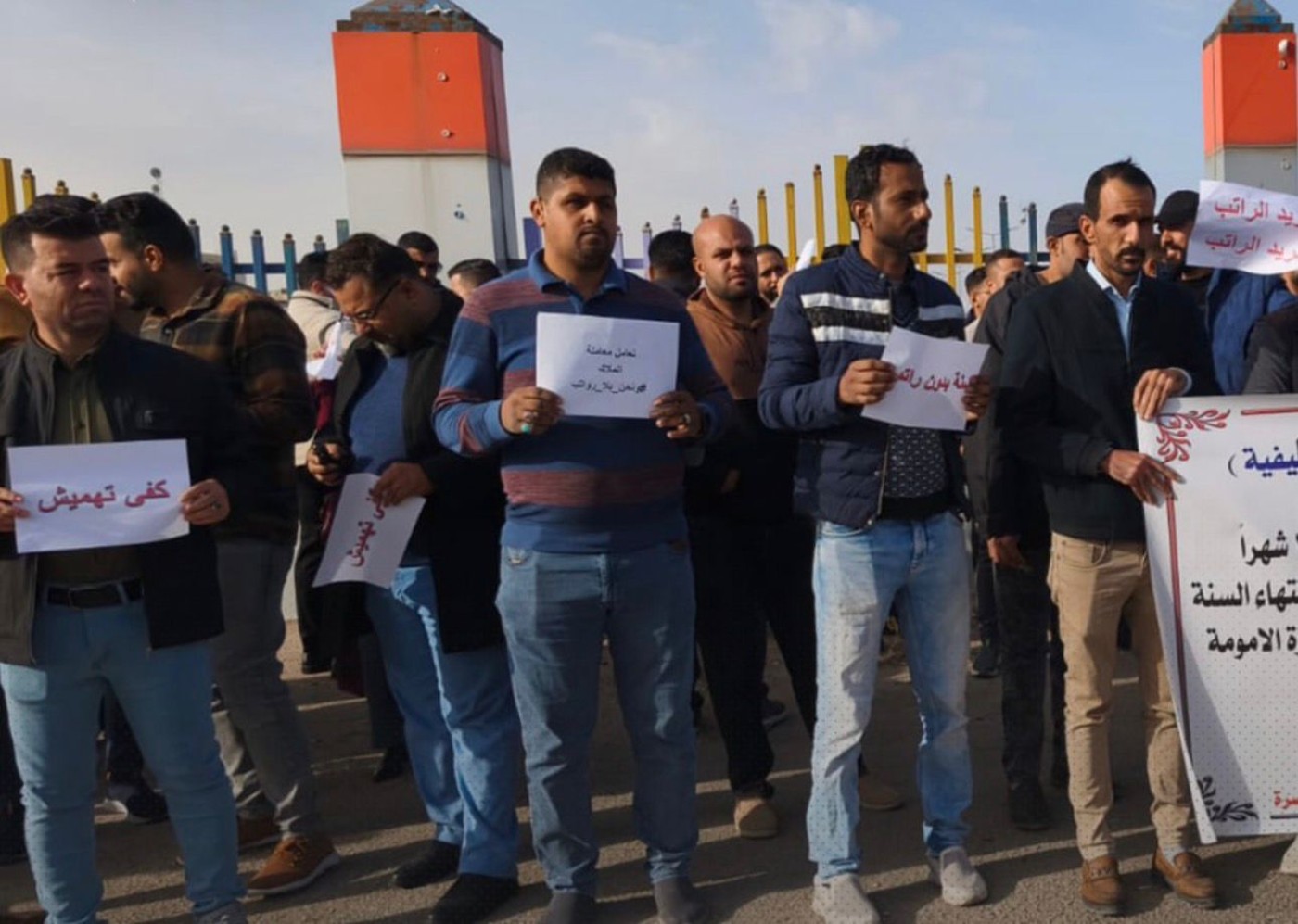 متعاقدو الأمن الغذائي محتجون في البصرة