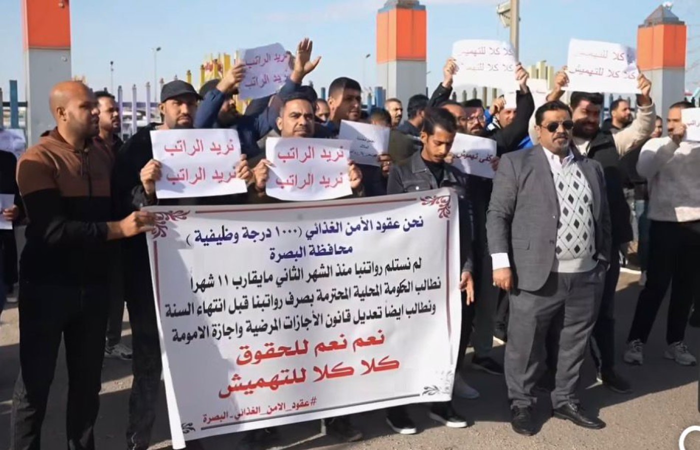 نظم موظفو عقود الأمن الغذائي في البصرة، وقفة احتجاجية أمام مبنى المحافظة، للتعبير عن رفضهم لتأخر صرف مستحقاتهم المالية التي لم تُصرف منذ الشهر الثاني من هذا العام، مطالبين الجهات المعنية بتنفيذ وعودها ووضع حلول عاجلة للأزمة المالية المستمرة.