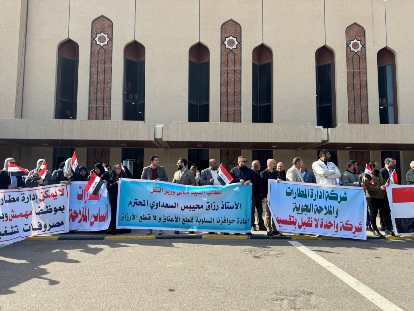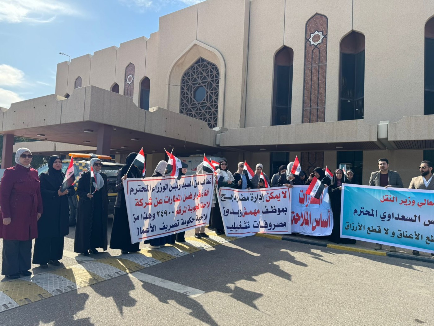 موظفو مطار البصرة معتصمين أمام المطار -الجبال
