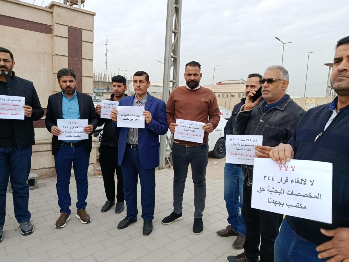 وذكر ممثل المحتجين، صفاء الضاحي، في حديث لمنصة "الجبال" أن "هذه الوقفة الاحتجاجية تأتي تنديداً بقرار مجلس الاقتصاد الوزاري، والذي يراد من خلاله إلغاء جزء من الحقوق المالية لمستحقيها وتحديداً القرار 344 لعام 2011 الذي منح مخصصات بنسبة 50 بالمئة لحملة الشهادات العليا، موضحاً أن "هذه المخصصات كانت تُعتبر بديلاً للمخصصات الجامعية للأساتذة في وزارة التعليم العالي، وتعد حقاً مكتسباً وفق القانون والدستور العراقي".