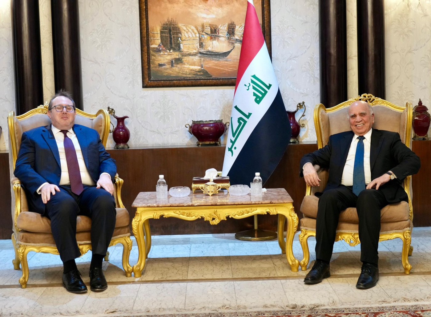واستقبل فؤاد حسين، القائم بأعمال سفارة الولايات المتحدة الأميركية لدى العراق، جوشوا هاريس، في بغداد، لبحث العلاقات الثنائية بين العراق والولايات المتحدة، وسبل تعزيزها في مختلف المجالات السياسية والأمنية والاقتصادية، بما يخدم المصالح المشتركة للبلدين، ويعزز التعاون القائم على الاحترام المتبادل.