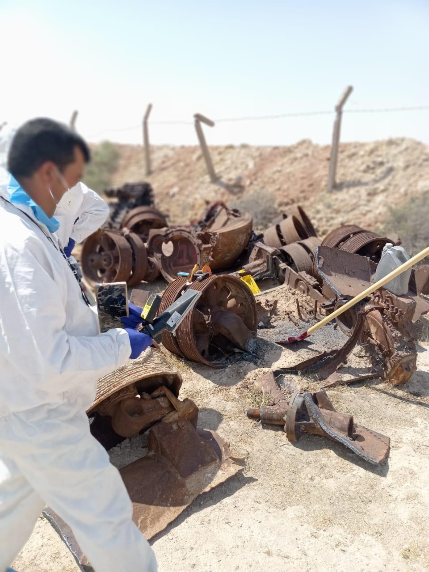 وبيّن أن نوعية المواد المدفونة شملت قطعاً حديدية لدبابات وهياكل سيارات ومركبات عسكرية تعرضت للقصف باستخدام أسلحة ملوثة، لاسيما خلال حربَي عامي 1991 و2003 حيث قامت فرق هيئة الطاقة الذرية بجمعها من مختلف مناطق المحافظة ونقلها وطمرها في هذا الموقع وفق بروتوكولات السلامة المعتمدة.