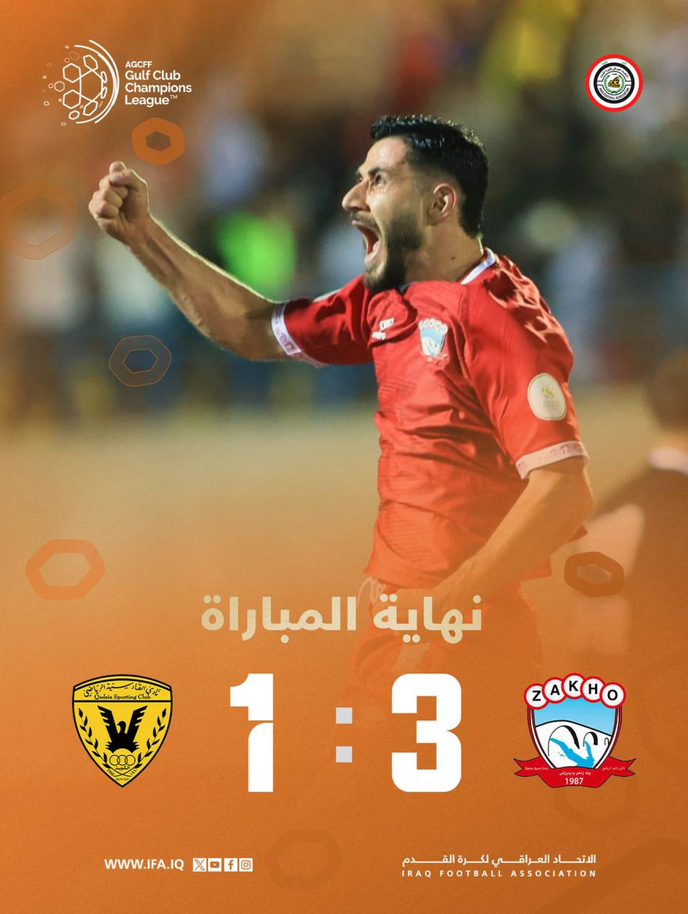 حقق فريق زاخو العراقي، الثلاثاء 30 أيلول 2025، فوزاً بثلاثة أهداف لهدف، على فريق القادسية الكويتي، ف مستهل مشواره في بطولة الخليج للأندية.